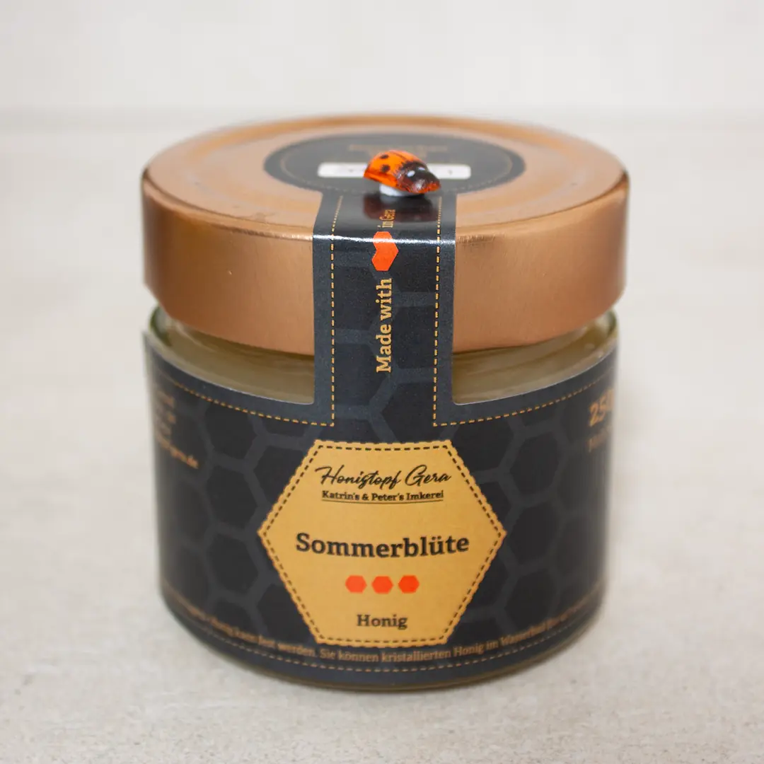 Herkunft & Qualität – Regionaler Honig aus Gera Unsere Völker stehen regional in der Geraer Umgebung und sammeln zu verschiedenen Jahreszeiten unterschiedliche Nektarquellen. Als kleine, familiäre Imkerei ernten wir jeden Honig erst bei voller Reife und verarbeiten ihn besonders schonend. Ohne Erhitzung, ohne aggressive Filterung, ohne Zusätze – einfach pur und naturbelassen. So bleiben alle wertvollen Enzyme, Pollen und natürlichen Aromen erhalten.